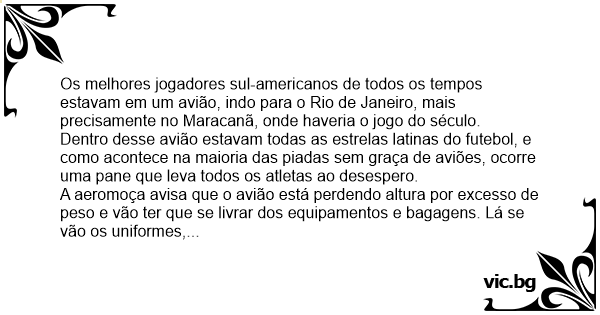 Os melhores jogadores sul-americanos de todos os tempos estavam em um avião, indo para o Rio de Janeiro, mais precisamente no Maracanã, onde haveria o jogo do século.