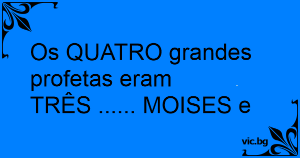 Os QUATRO grandes profetas eram TRÊS ...... MOISES e ELIAS