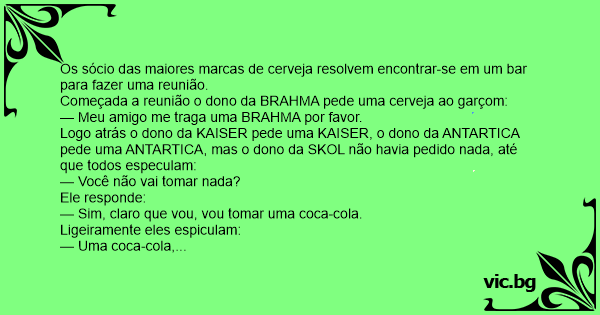 Começada a reunião o dono da BRAHMA pede uma cerveja ao garçom: