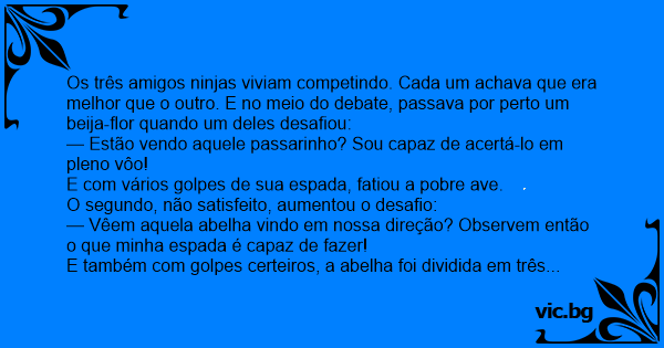 O terceiro ninja, justamente o mais baixinho, não querendo ficar pra trás, propõe um desafio ainda maior: