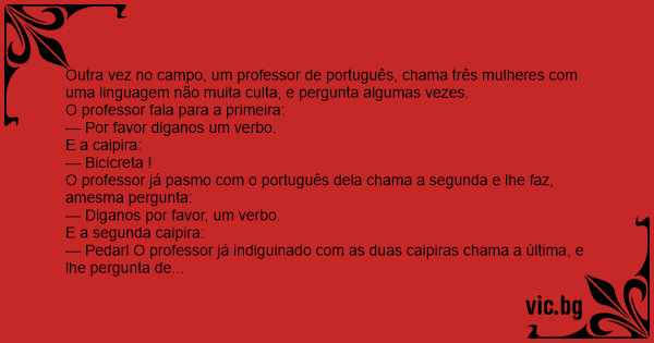 — Pedarl O professor já indiguinado com as duas caipiras chama a última, e lhe pergunta de novo: