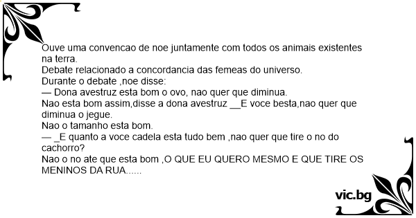 Nao esta bom assim,disse a dona avestruz __E voce besta,nao quer que diminua o jegue.