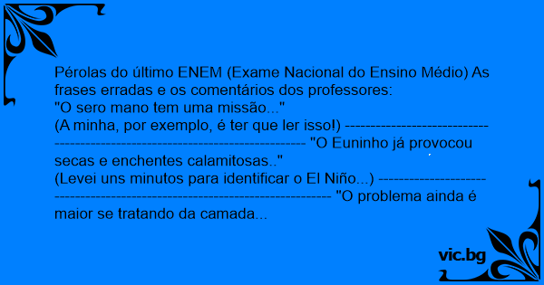 Pérolas do último ENEM (Exame Nacional do Ensino Médio) As frases erradas e os comentários dos professores: