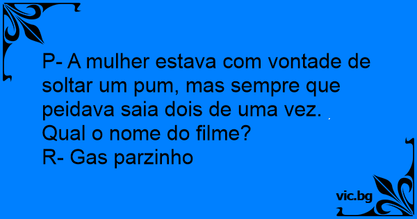 P- A mulher estava com vontade de soltar um pum, mas sempre que peidava saia dois de uma vez.