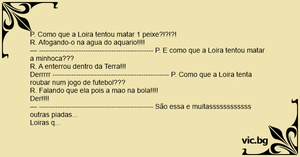 P. Como que a Loira tentou matar 1 peixe?!?!?!