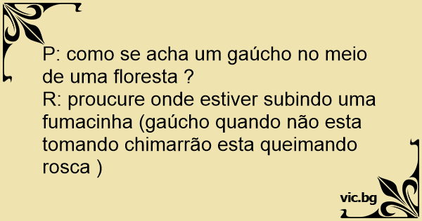 R: proucure onde estiver subindo uma fumacinha (gaúcho quando não esta tomando chimarrão esta queimando rosca )