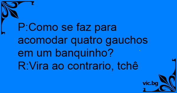 P:Como se faz para acomodar quatro gauchos em um banquinho?