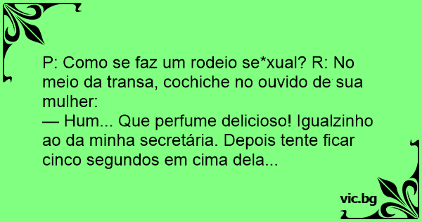 P: Como se faz um rodeio se*xual? R: No meio da transa, cochiche no ouvido de sua mulher: