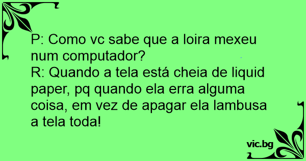 R: Quando a tela está cheia de liquid paper, pq quando ela erra alguma coisa, em vez de apagar ela lambusa a tela toda!
