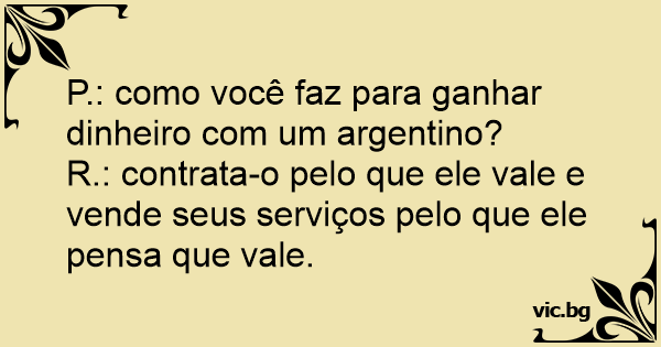 P.: como você faz para ganhar dinheiro com um argentino?