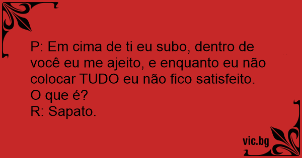 P: Em cima de ti eu subo, dentro de você eu me ajeito, e enquanto eu não colocar TUDO eu não fico satisfeito.