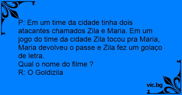P: Em um time da cidade tinha dois atacantes chamados Zila e Maria. Em um jogo do time da cidade Zila tocou pra Maria, Maria devolveu o passe e Zila fez um golaço de letra.