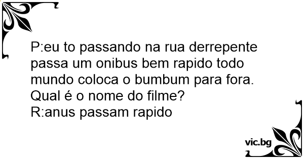 P:eu to passando na rua derrepente passa um onibus bem rapido todo mundo coloca o bumbum para fora. Qual é o nome do filme?