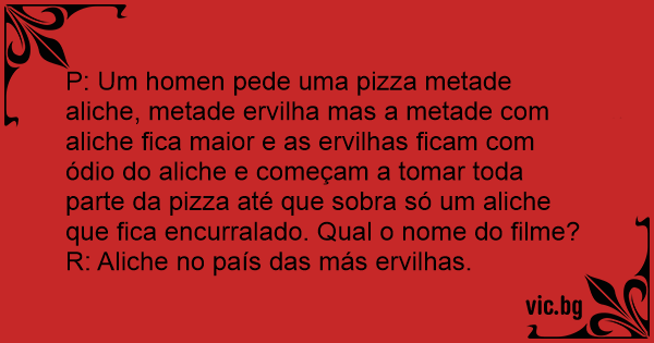 P: Um homen pede uma pizza metade aliche, metade ervilha mas a metade com aliche fiса maior e as ervilhas ficam com ódio do aliche e começam a tomar toda parte da pizza até que sobra só um aliche que fiса encurralado. Qual o nome do filme?