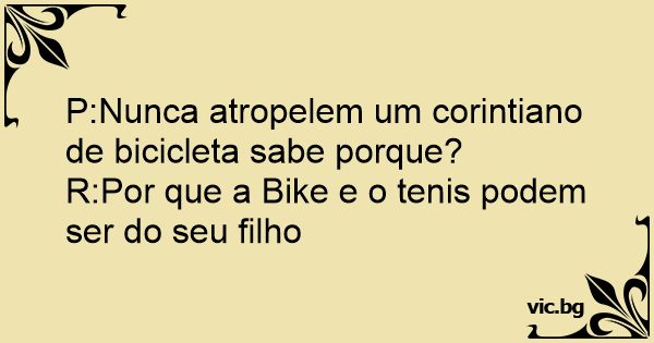 P:Nunca atropelem um corintiano de bicicleta sabe porque?