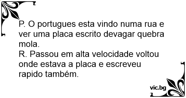 P. O portugues esta vindo numa rua e ver uma placa escrito devagar quebra mola.