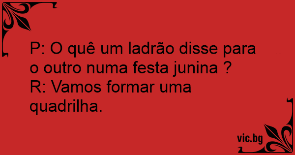 P: O quê um ladrão disse para o outro numa festa junina ?