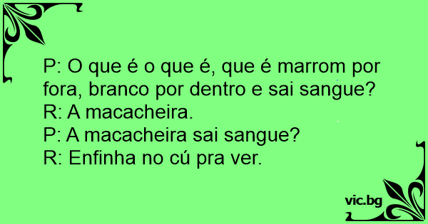 P: O que é o que é, que é marrom por fora, branco por dentro e sai sangue?