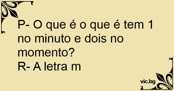 P- O que é o que é tem 1 no minuto e dois no momento?