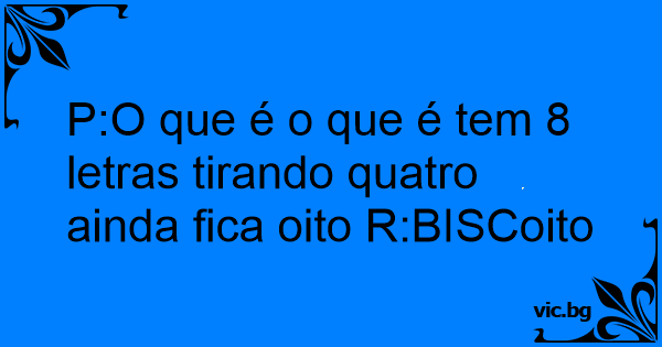 P:O que é o que é tem 8 letras tirando quatro ainda fiса oito R:BISCoito
