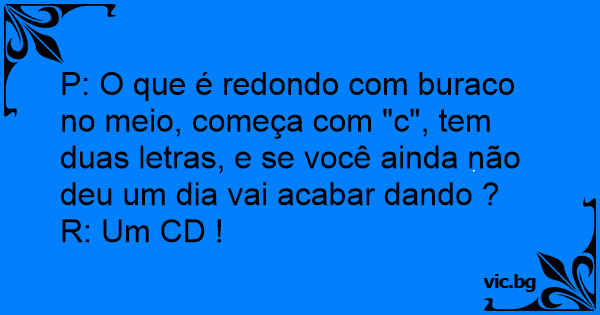 P: O que é redondo com buraco no meio, começa com "c", tem duas letras, e se você ainda não deu um dia vai acabar dando ?