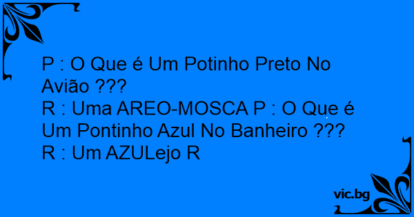 R : Uma AREO-MOSCA P : O Que é Um Pontinho Azul No Banheiro ???