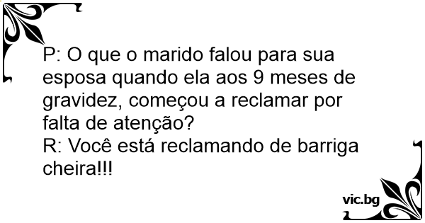 P: O que o marido falou para sua esposa quando ela aos 9 meses de gravidez, começou a reclamar por falta de atenção?