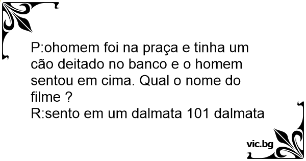 P:ohomem foi na praça e tinha um cão deitado no banco e o homem sentou em cima. Qual o nome do filme ?