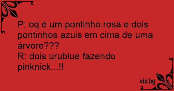 P: oq é um pontinho rosa e dois pontinhos azuis em cima de uma árvore???