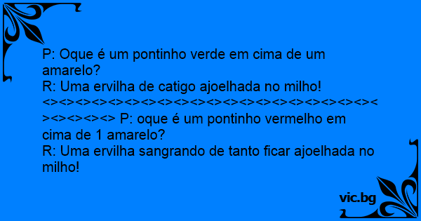 R: Uma ervilha sangrando de tanto ficar ajoelhada no milho!