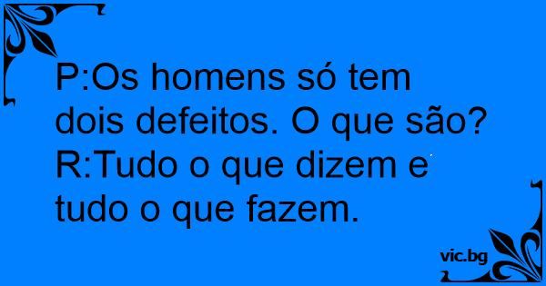 P:Os homens só tem dois defeitos. O que são?