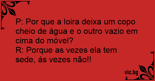 P: Por que a loira deixa um copo cheio de água e o outro vazio em cima do móvel?