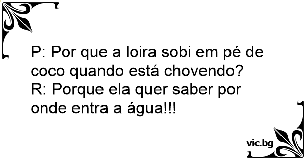 P: Por que a loira sobi em pé de coco quando está chovendo?
