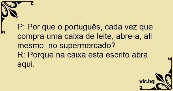 P: Por que o português, cada vez que compra uma caixa de leite, abre-a, ali mesmo, no supermercado?