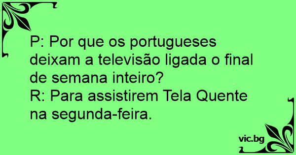 P: Por que os portugueses deixam a televisão ligada o final de semana inteiro?