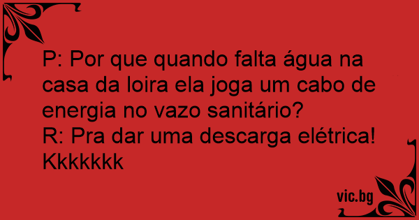 P: Por que quando falta água na casa da loira ela joga um cabo de energia no vazo sanitário?