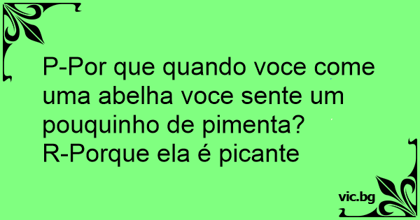 P-Por que quando voce come uma abelha voce sente um pouquinho de pimenta?