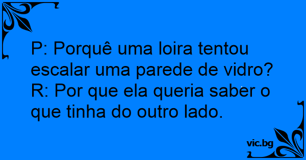 P: Porquê uma loira tentou escalar uma parede de vidro?