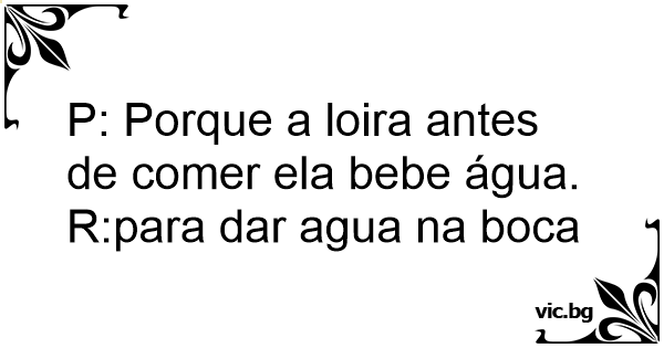 P: Porque a loira antes de comer ela bebe água.