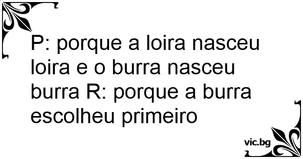 P: porque a loira nasceu loira e o burra nasceu burra R: porque a burra escolheu primeiro