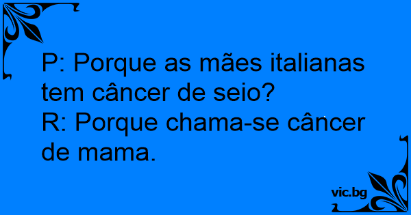 P: Porque as mães italianas tem câncer de seio?