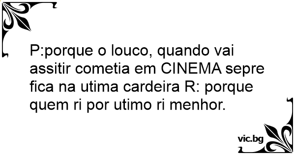 P:porque o louco, quando vai assitir cometia em CINEMA sepre fiса na utima cardeira R: porque quem ri por utimo ri menhor.
