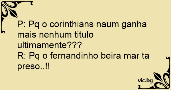 P: Pq o corinthians naum ganha mais nenhum titulo ultimamente???