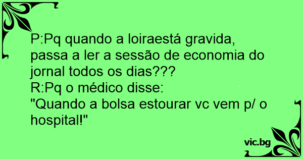P:Pq quando a loiraestá gravida, passa a ler a sessão de economia do jornal todos os dias???
