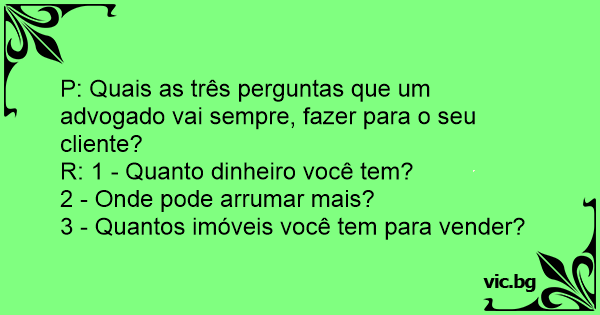 P: Quais as três perguntas que um advogado vai sempre, fazer para o seu cliente?