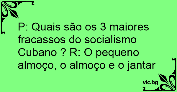 P: Quais são os 3 maiores fracassos do socialismo Cubano ? R: O pequeno almoço, o almoço e o jantar
