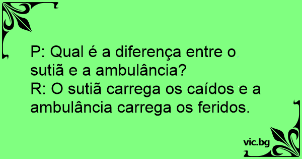 R: O sutiã carrega os caídos e a ambulância carrega os feridos.