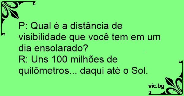 R: Uns 100 milhões de quilômetros... daqui até o Sol.
