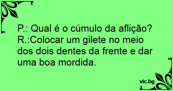 R.:Colocar um gilete no meio dos dois dentes da frente e dar uma boa mordida.