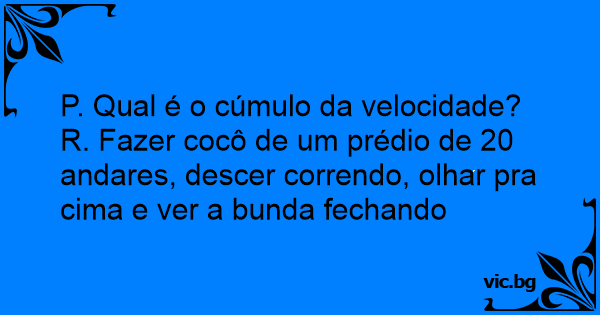 R. Fazer cocô de um prédio de 20 andares, descer correndo, olhar pra cima e ver a bunda fechando